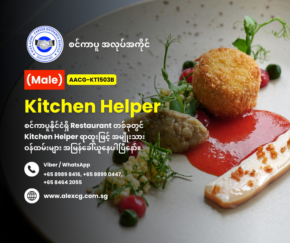 WhatsApp / Viber +65 8899 0447, +65 8989 8416, +65 8464 2055 မှာ အလုပ်လျှောက်ပါ။