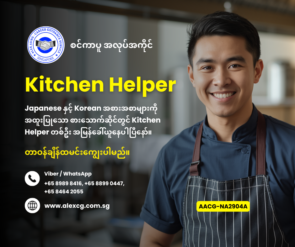 WhatsApp / Viber +65 8989 8416, +65 8899 0447, +65 8464 2055 မှာ အလုပ်လျှောက်ပါ။