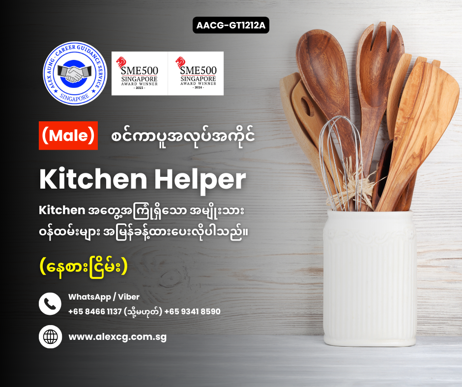 WhatsApp/Viber +65 8466 1137 / +65 9341 8590 မှာ အလုပ်လျှောက်ပါ။
