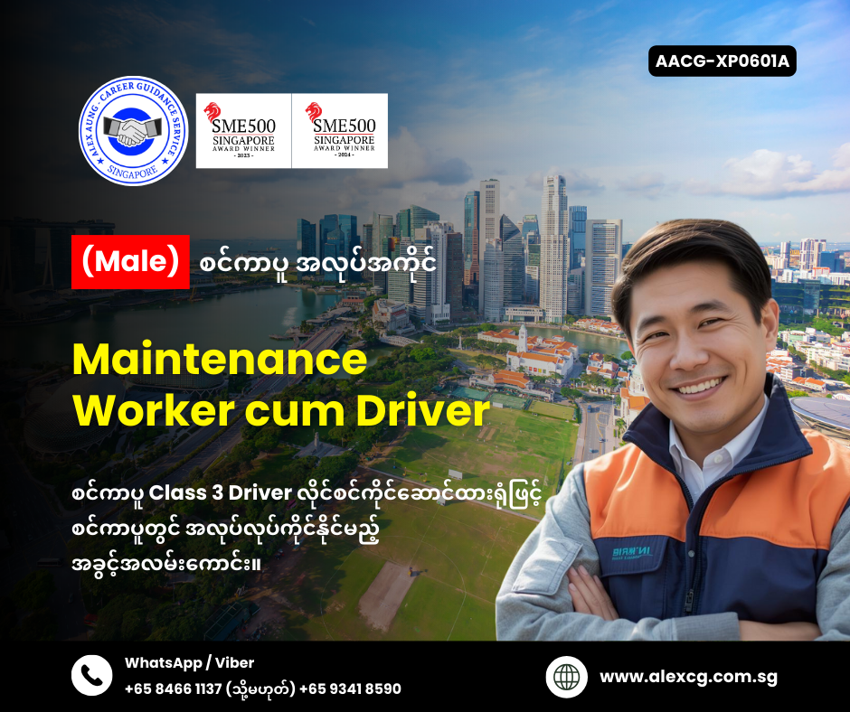 WhatsApp/Viber +65 8466 1137 / +65 9341 8590 မှာ အလုပ်လျှောက်ပါ။