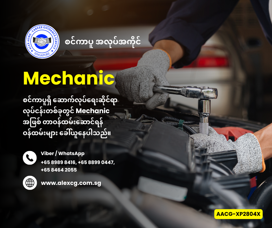 WhatsApp / Viber +65 8989 8416, +65 8899 0447, +65 8464 2055 မှာ အလုပ်လျှောက်ပါ။