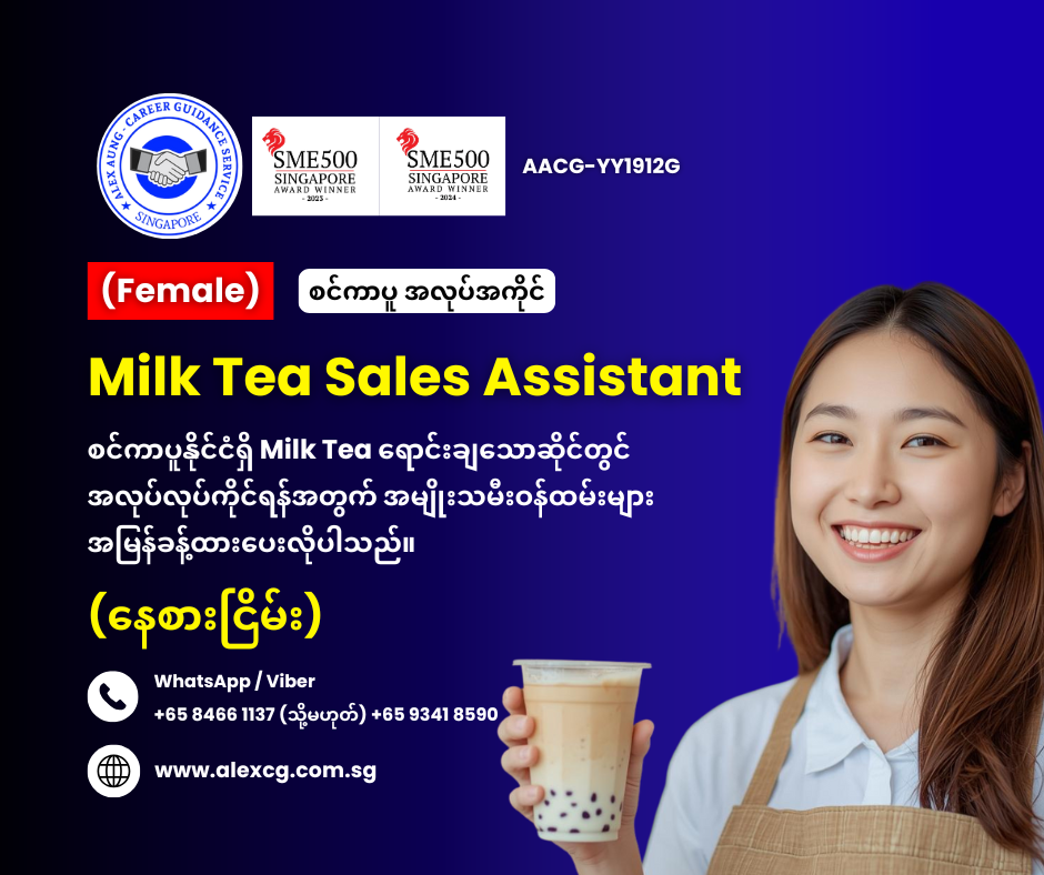 WhatsApp/Viber +65 8466 1137 / +65 9341 8590 မှာ အလုပ်လျှောက်ပါ။