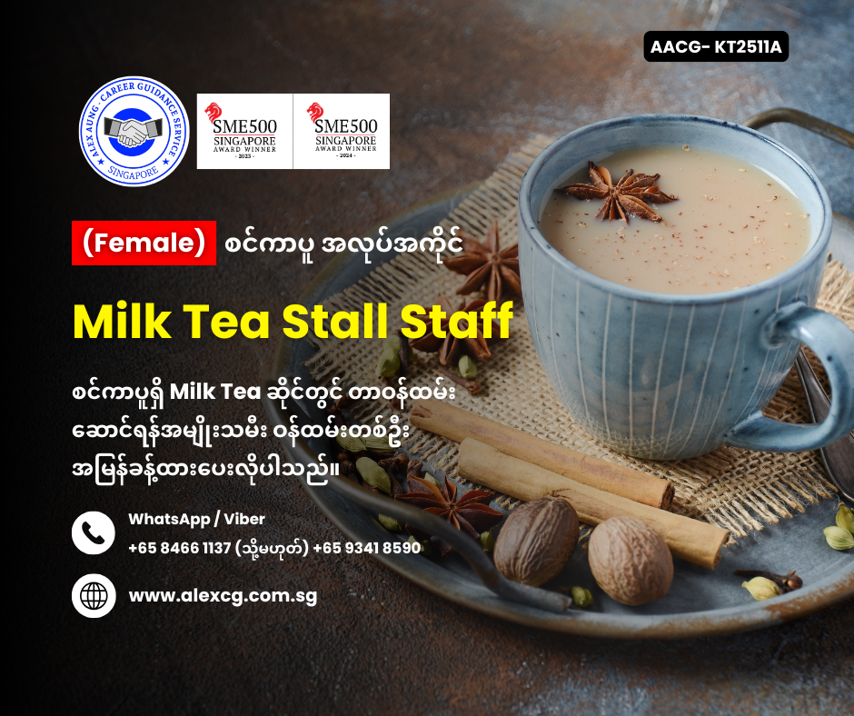 WhatsApp/Viber +65 8466 1137 / +65 9341 8590 မှာ အလုပ်လျှောက်ပါ။