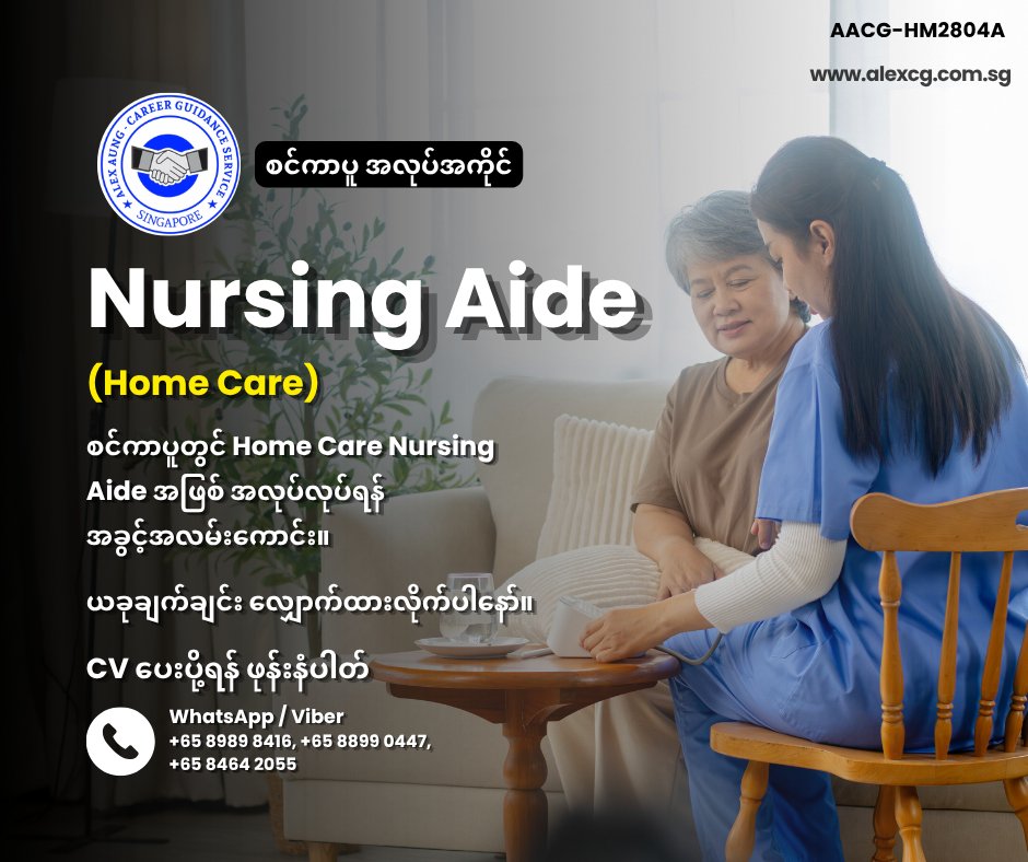 - Singapore ရှိ Nursing Home (သို့မဟုတ်) Active Global တွင် လုပ်ငန်းအတွေ့အကြုံရှိရပါမည်။