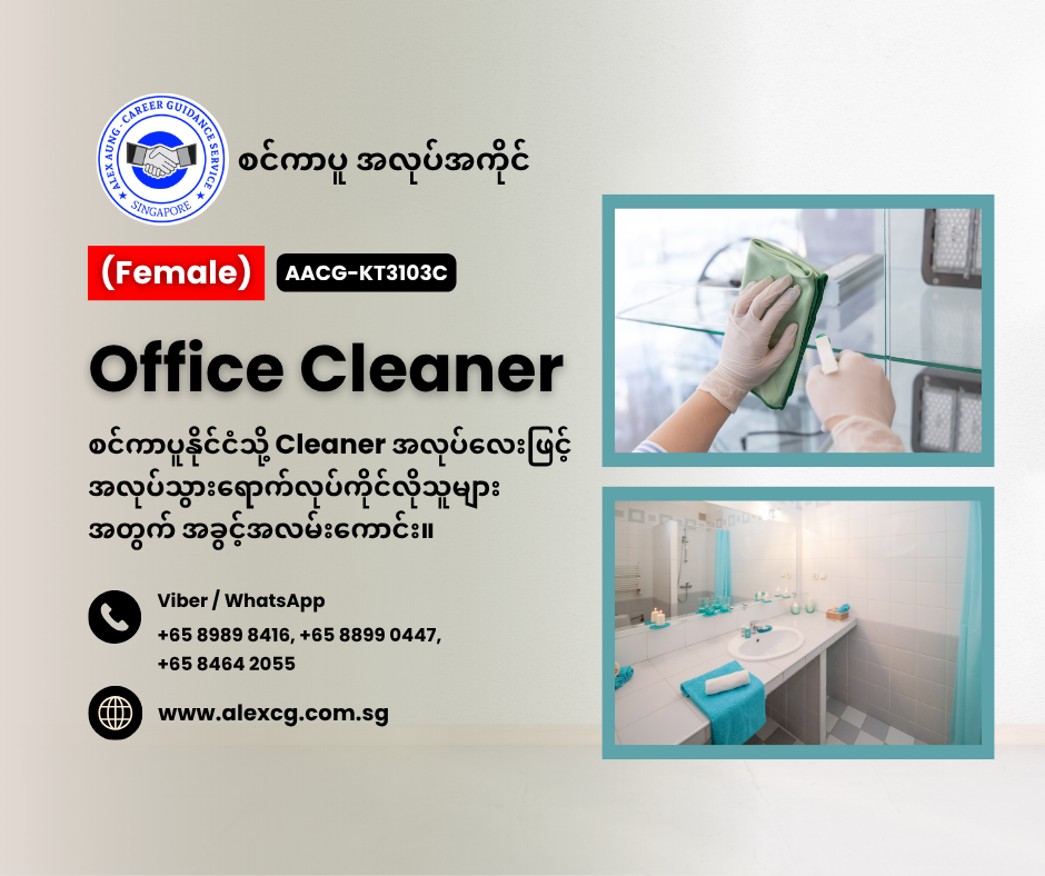 WhatsApp / Viber +65 8899 0447, +65 8989 8416, +65 8464 2055 မှာ အလုပ်လျှောက်ပါ။