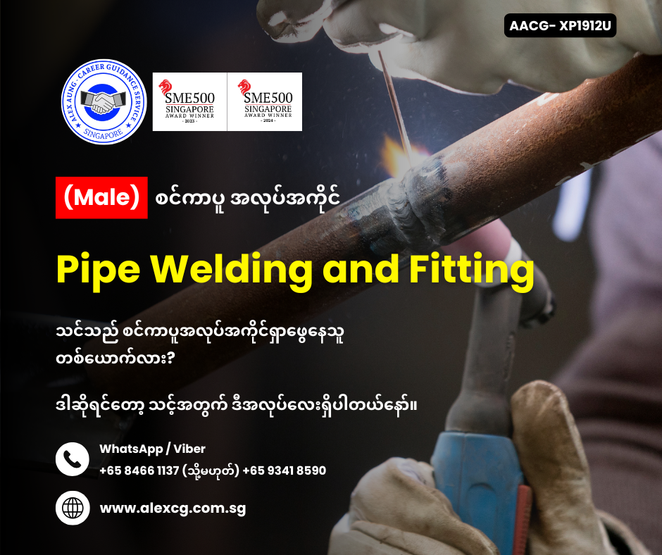 - သံမဏိပိုက်ဂဟေဆက်ခြင်း၊ ပိုက်တပ်ဆင်ခြင်း၊ ပိုက်ဆွဲခြင်းနှင့် အထွေထွေအလုပ်များတွင် အခြေခံကျွမ်းကျင်မှုရှိသူ။