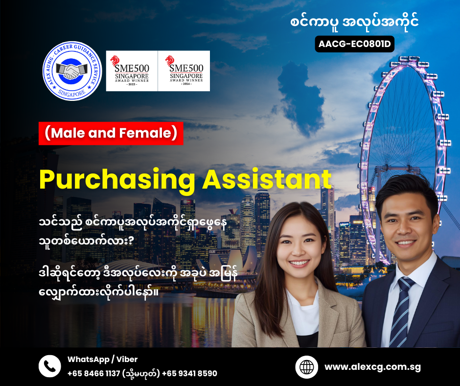- Purchasing Specialist ကို ကူညီပြီး strategic sourcing၊ supplier evaluation နှင့် contract negotiation များကို ဆောင်ရွက်ရမည်။