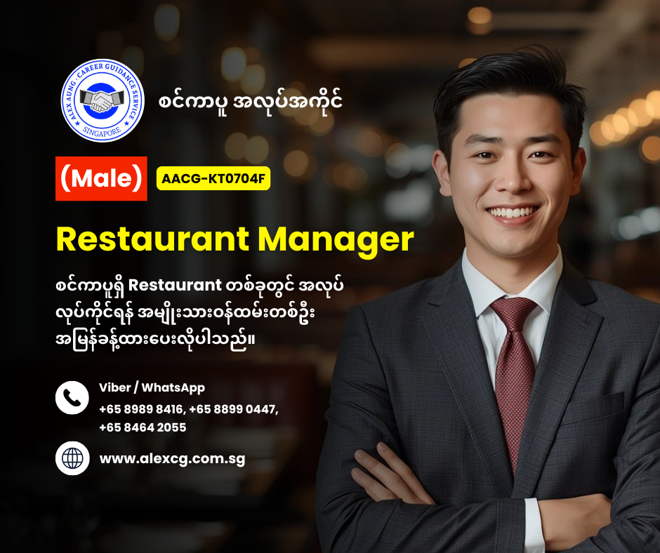 WhatsApp / Viber +65 8899 0447, +65 8989 8416, +65 8464 2055 မှာ အလုပ်လျှောက်ပါ။