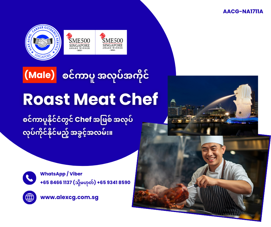 WhatsApp/Viber +65 8466 1137 / +65 9341 8590 မှာ အလုပ်လျှောက်ပါ။