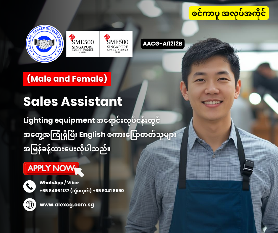WhatsApp/Viber +65 8466 1137 / +65 9341 8590 မှာ အလုပ်လျှောက်ပါ။