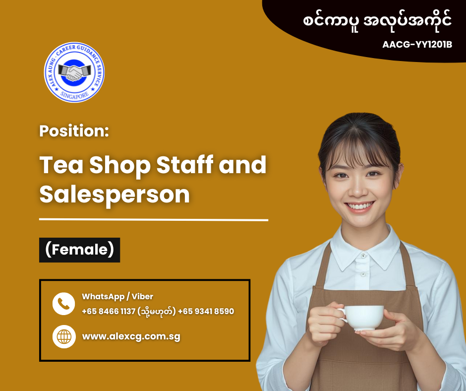WhatsApp/Viber +65 8466 1137 / +65 9341 8590 မှာ အလုပ်လျှောက်ပါ။