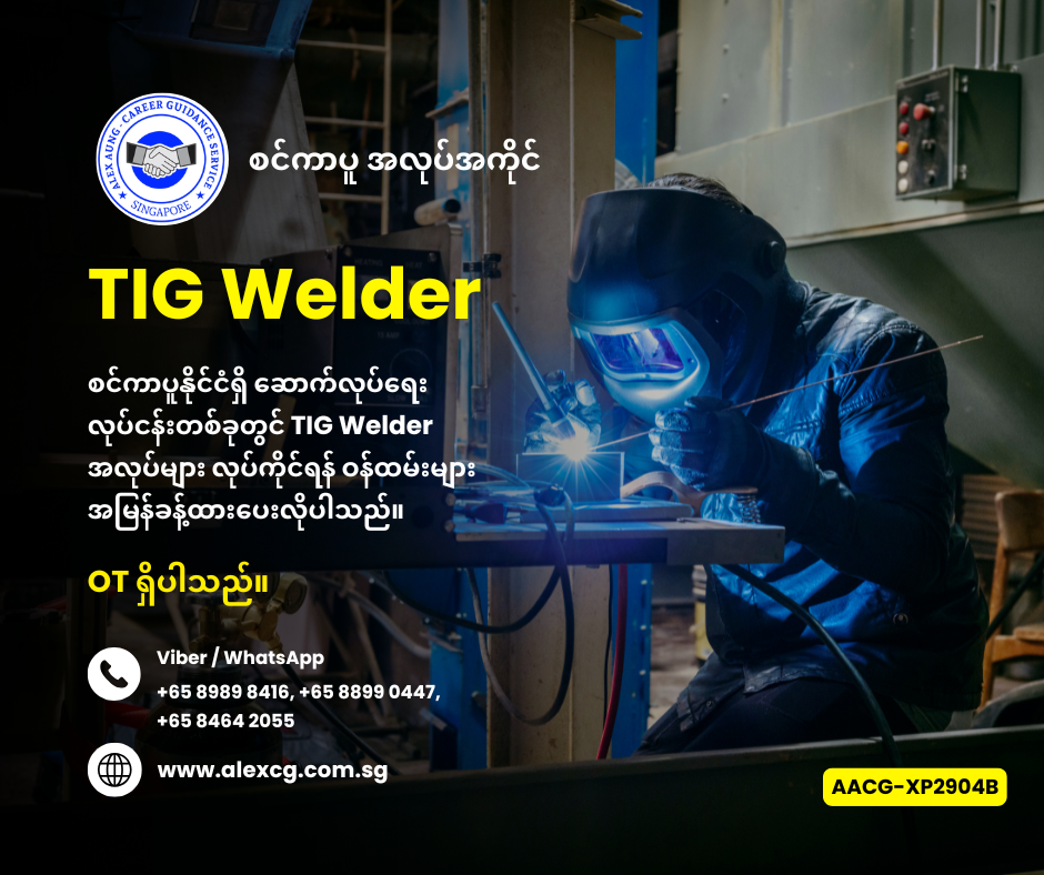 - TIG welding အတွေ့အကြုံရှိရပါမည်။