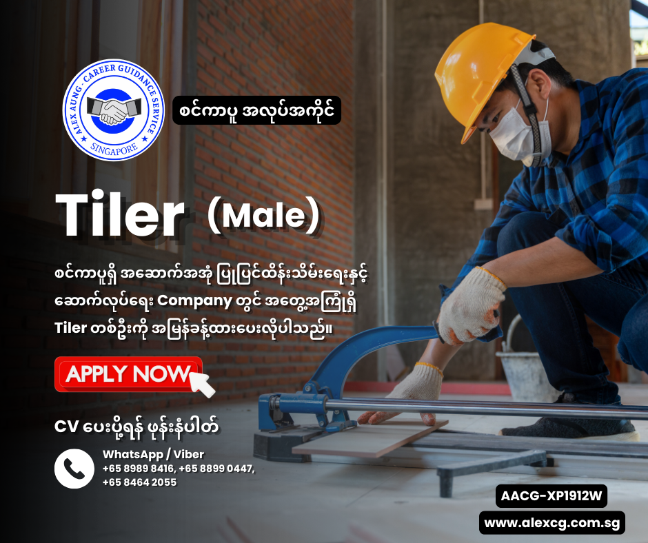 WhatsApp/Viber +65 8989 8416,+65 8899 0447, +65 8464 2055 မှာ အလုပ်လျှောက်ပါ။