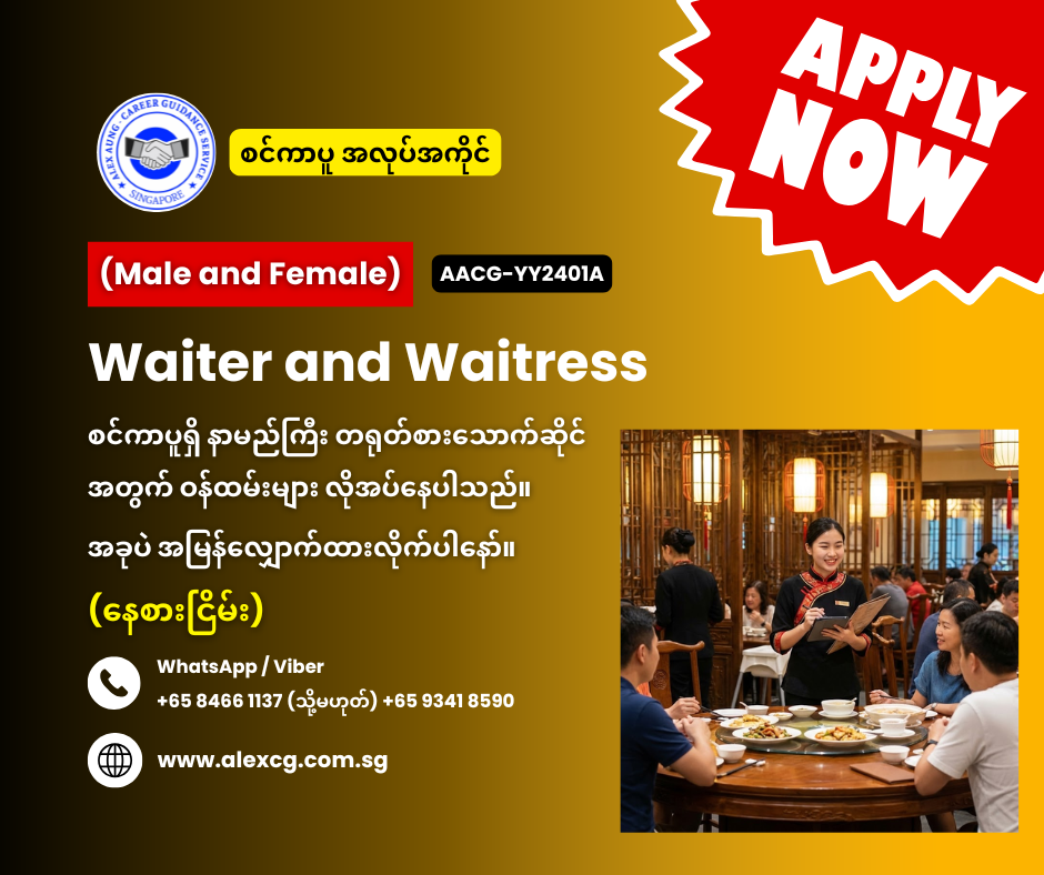 WhatsApp/Viber +65 8466 1137 / +65 9341 8590 မှာ အလုပ်လျှောက်ပါ။