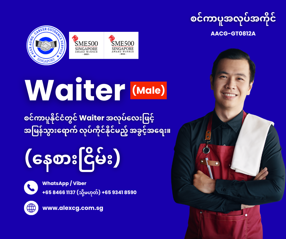 WhatsApp/Viber +65 8466 1137 / +65 9341 8590 မှာ အလုပ်လျှောက်ပါ။
