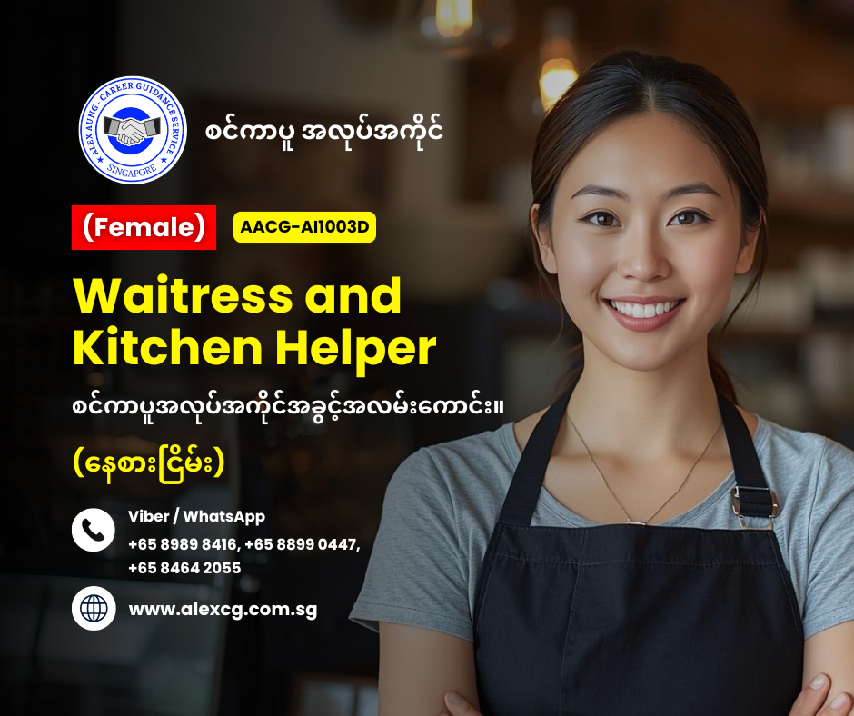 WhatsApp / Viber +65 8899 0447, +65 8989 8416, +65 8464 2055 မှာ အလုပ်လျှောက်ပါ။