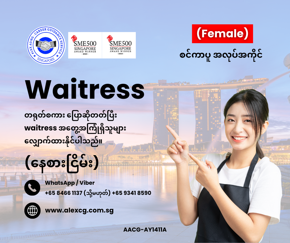 WhatsApp/Viber +65 8466 1137 / +65 9341 8590 မှာ အလုပ်လျှောက်ပါ။
