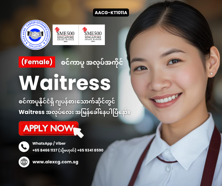 WhatsApp/Viber +65 8466 1137 / +65 9341 8590 မှာ အလုပ်လျှောက်ပါ။