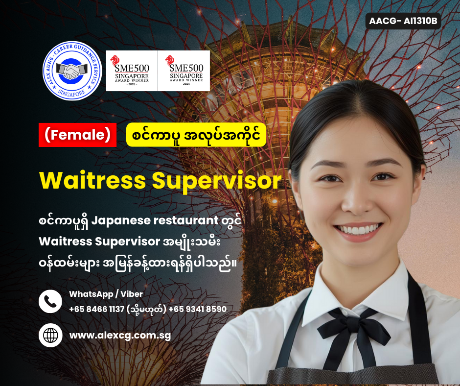 WhatsApp/Viber +65 8466 1137 / +65 9341 8590 မှာ အလုပ်လျှောက်ပါ။