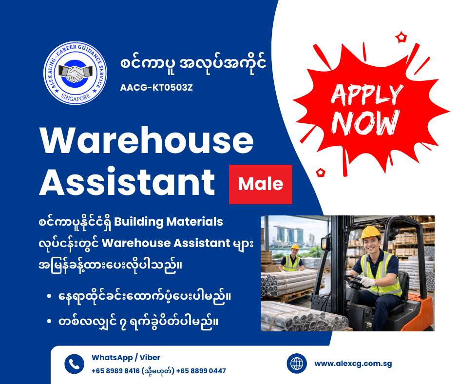 WhatsApp / Viber +65 8899 0447, +65 8989 8416 မှာ အလုပ်လျှောက်ပါ။