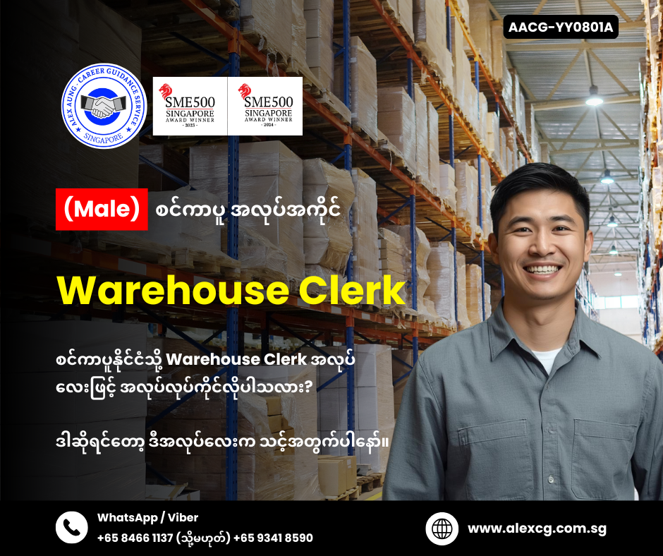 WhatsApp/Viber +65 8466 1137 / +65 9341 8590 မှာ အလုပ်လျှောက်ပါ။