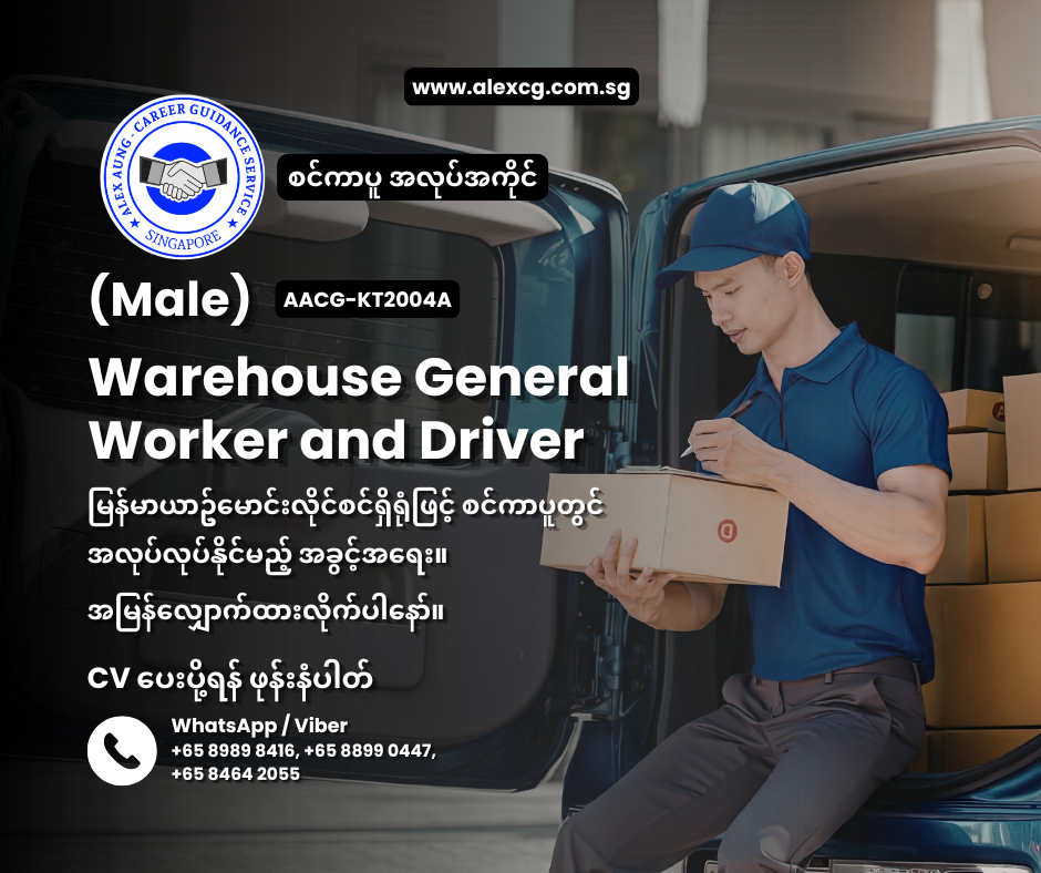 WhatsApp / Viber +65 8989 8416,+65 8899 0447, +65 8464 2055 မှာ အလုပ်လျှောက်ပါ။