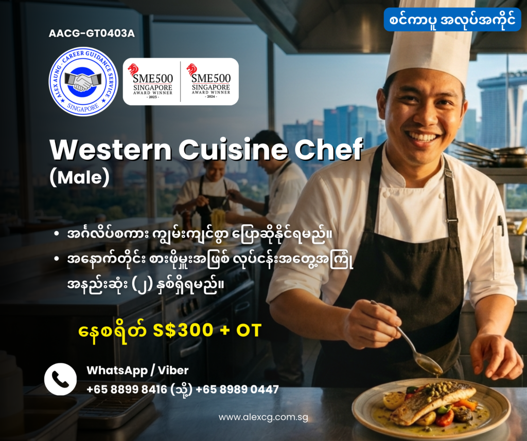 WhatsApp / Viber +65 8899 0447, +65 8989 8416 မှာ အလုပ်လျှောက်ပါ။